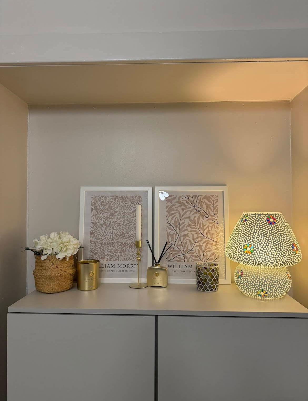 Ob in Pilz- oder Ovalform, in schimmerndem Gold, buntem Farbspiel oder klassischem Weiß – jede Lampe bringt Struktur, Wärme und eine besondere Atmosphäre in den Raum.