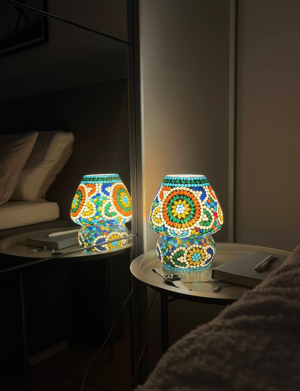 Unsere Mosaik-Tischlampen sind handgefertigte Unikate, die orientalische Eleganz mit moderner Wohnkultur verbinden.